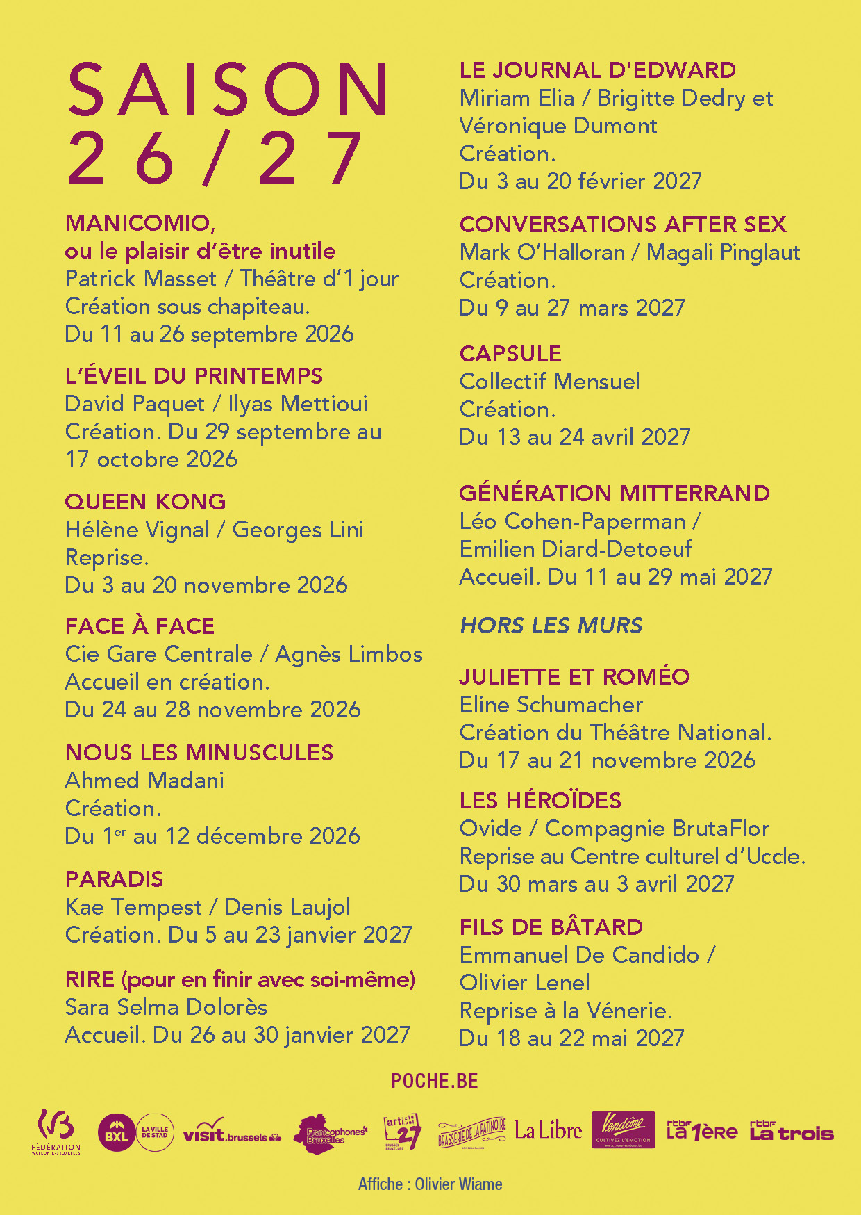 26-27, la saison du 75e - et ses neuf spectacles en création ! -, pourrait être une belle saison ; une de celles qui comptent… Alors, abonnez-vous !